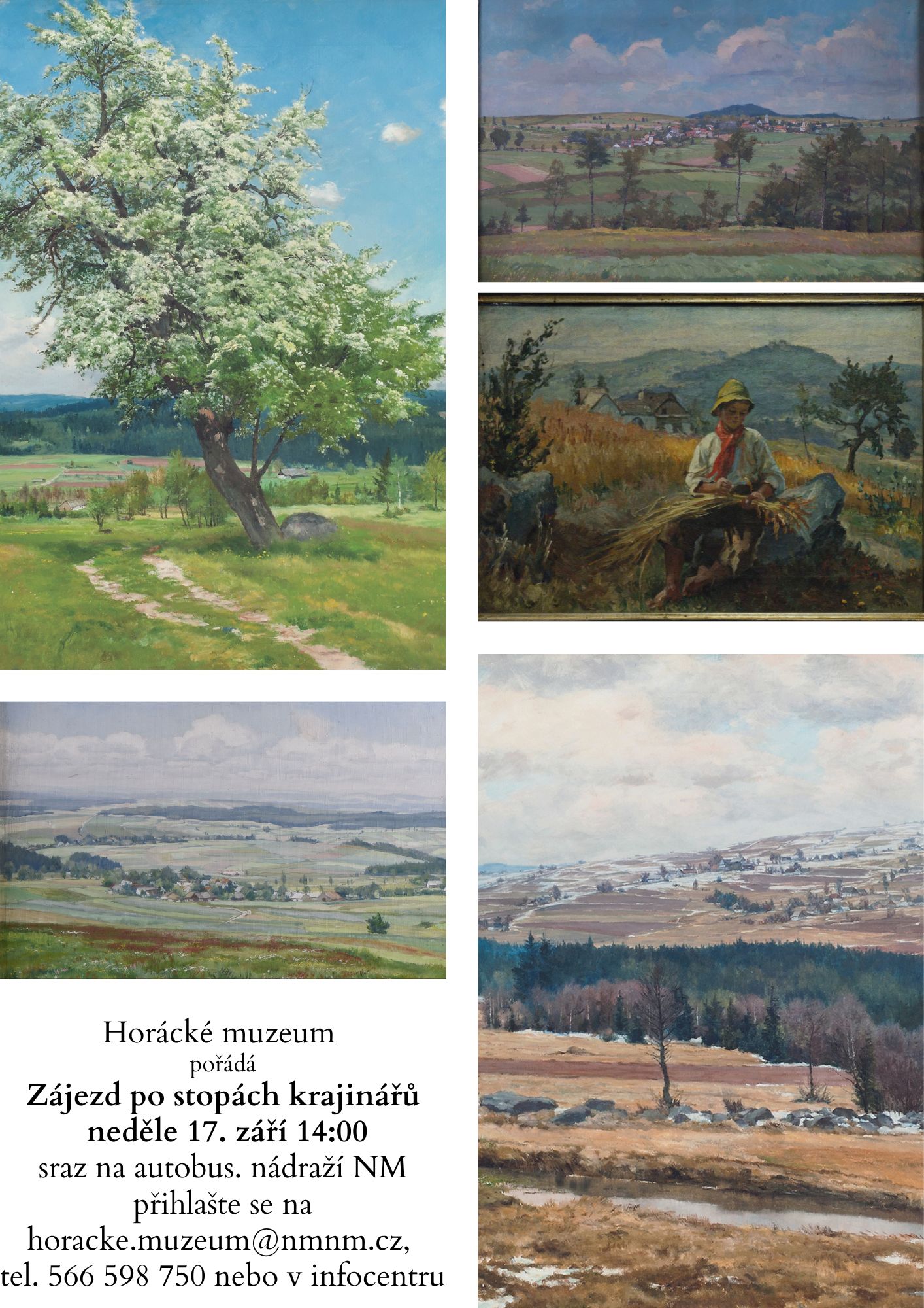 Každý rok pořádáme v rámci Dnů evropského dědictví tematický muzejní zájezd. Letos se vydáme po stopách výtvarníků krajinářů. Navštívíme Sněžné, Podlesí, Svratku a Blatiny. Průvodci Petr Halas, autor knihy Vcházení do obrazů Josefa Jambora a Alice Hradilová.