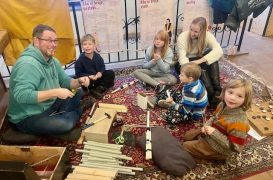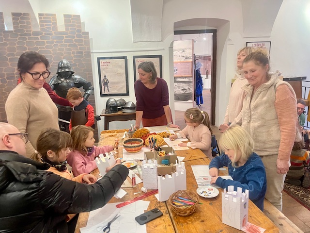 Hravou výstavu pro všechny generace Vzhůru do středověku! jsme v neděli 23. listopadu zakončili zábavným odpolednem, ve kterém se vyráběly středověké hrady, kuše a hráli nám k tomu středověké písně Jakub O. Tomáš na dudy a dívky z kroužku DDM pod vedením Emy Oravcové na flétničky.